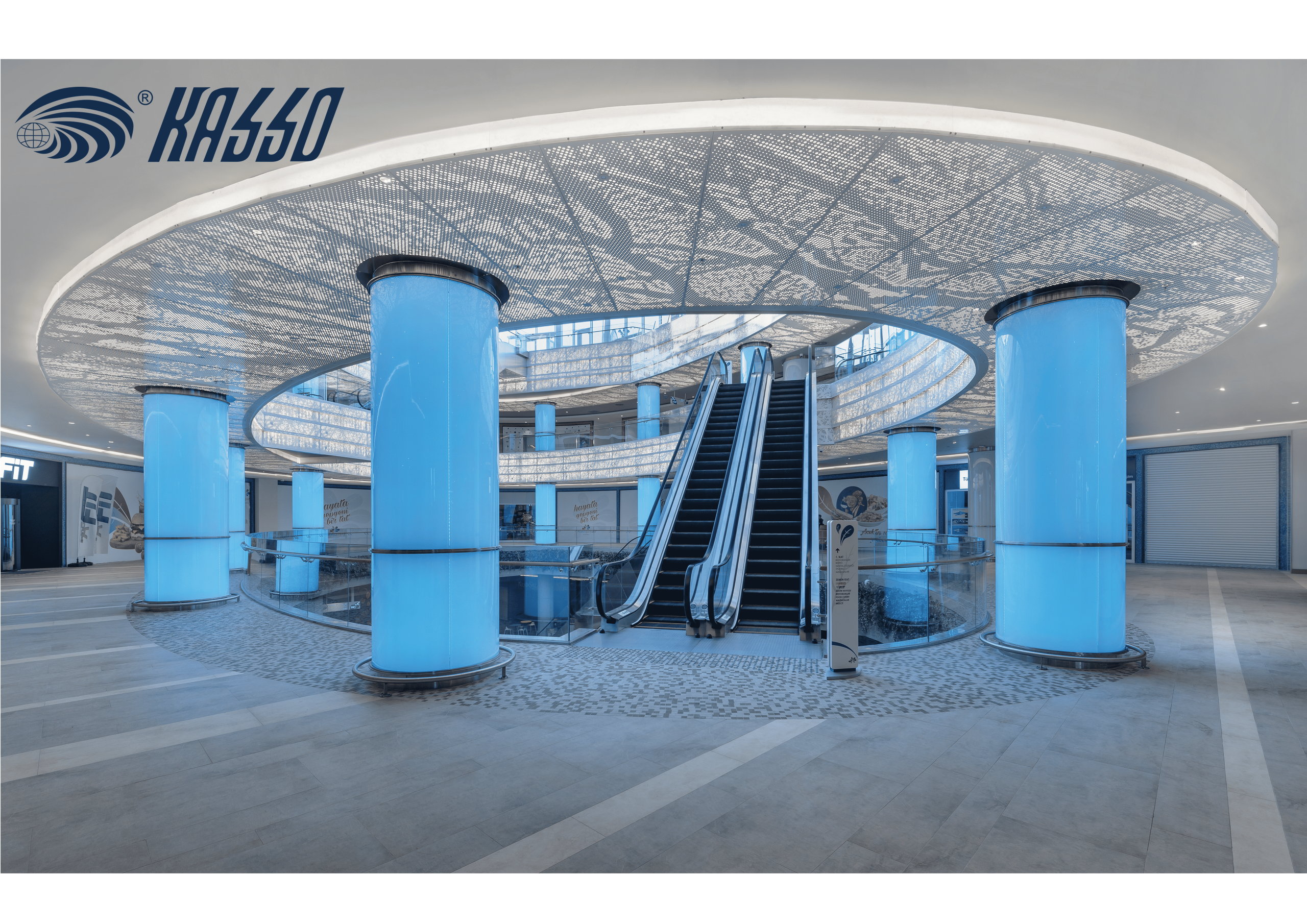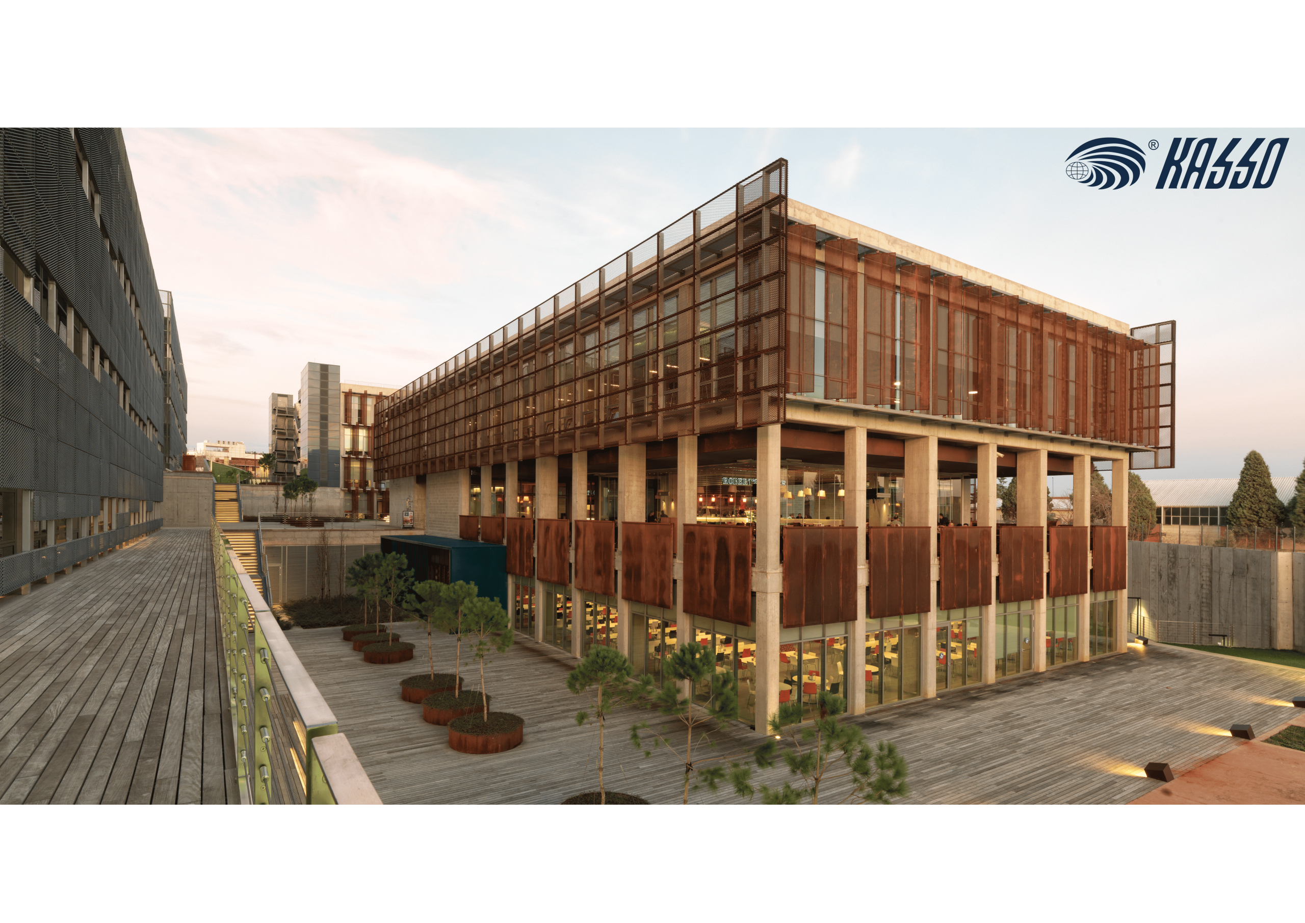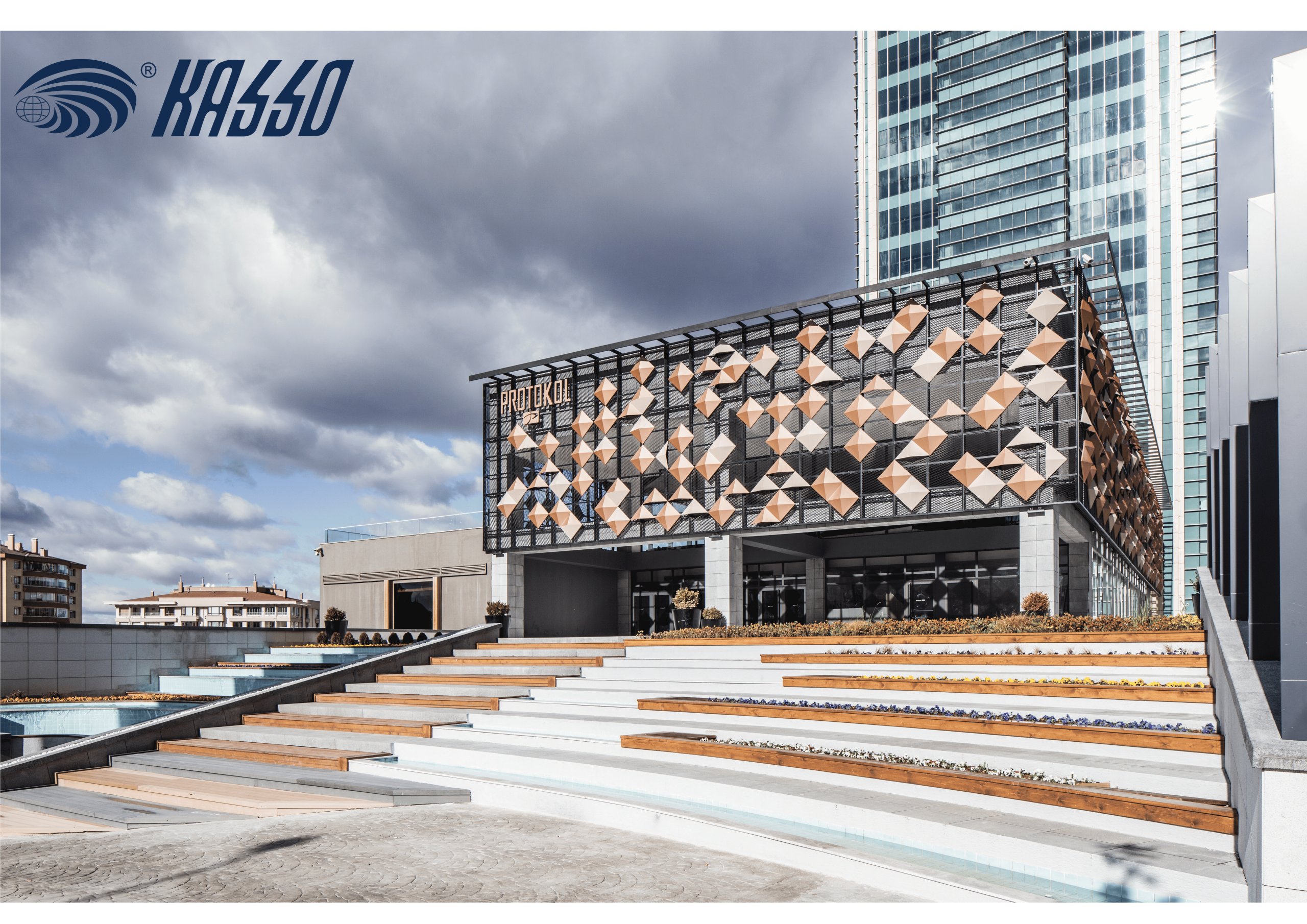 KASSO product range offers, expanded mesh, perforated metals, pattern cut metals in various forms, systems/details, materials, sizes and colours to meet each individual project’s design aspect in accordance with aesthetic, technical and economic conditions. Completed doubleskin facade, sun control panels and operable facade systems reference projects shows the endless possibilities of KASSO Metal Facade Cladding products